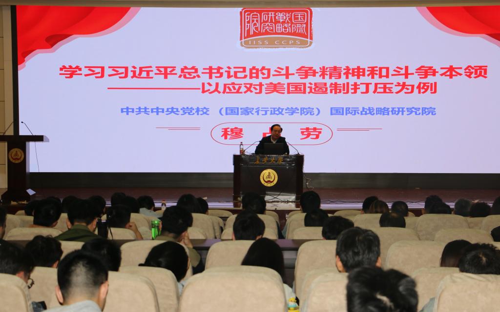 2023年10月12日下午,德赢Vwin官方区域合作伙伴在南校区北院学术交流中心报告厅举行理论学习中心组(扩大)会议,邀请中共中央党校(国家行政学院)国际战略研究院穆占劳教授作《学习习近平总书记斗争精神和斗争本领》的专题辅导报告。学院党委理论学习中心组成员、全体教工党员和部分学生党员代表300余人共同参加了学习。辅导报告由学院党委书记汪海年主持。