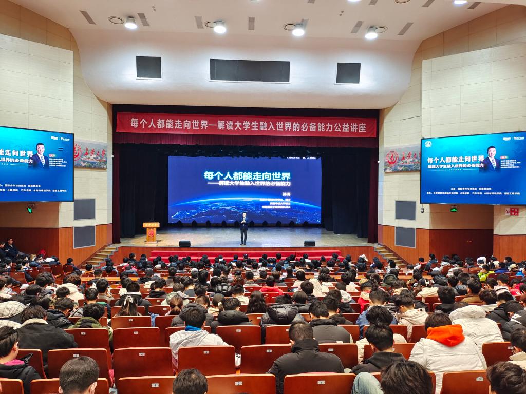 12月13日晚新东方教育科技集团助理副总裁、新东方前途出国总裁孙涛受邀来校作“每个人都能走向世界——解读大学生融入世界的必备能力”大型公益讲座。本次活动由学校国际合作与交流处、招生就业处主办,德赢Vwin官方区域合作伙伴、长安都柏林国际交通学院、汽车学院、水利与环境学院、运输工程学院联合承办,来自各院(系)的1000余名学生在北校区长安文化艺术中心大礼堂参加讲座。