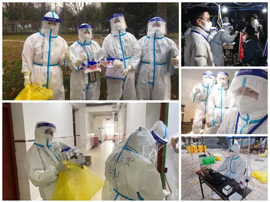在本次疫情防控中,由于学生基数庞大,为减轻医务工作者的工作量,保证核酸检测有序高效进行,德赢官网党员志愿者不顾危险、逆行而上,投身于协助医务工作者核酸检测的工作中。其中硕2108党支部吴为、杨浩等志愿者协助医务工作者共同前往学生宿舍采集核酸样本;硕1912党支部张博星做为兼职辅导员更是积极发挥党员的先锋模范作用,在每次核酸检测时都身穿防护服值班;硕2104党支部党员、硕1904党支部辛磊,在核酸检测工作中主动担任现场秩序维护和健康码扫描确认的工作。在核酸检测工作中,德赢官网研究生党员勇担挑战,共克时艰,助力疫情防控,充分发挥党员先锋模范作用和支部战斗堡垒作用,让党旗高高飘扬在疫情防控一线。